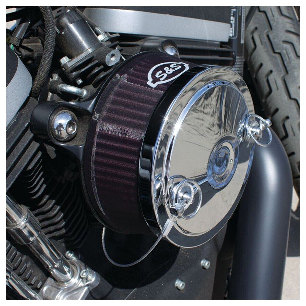 This nylon air filter covers for the standard filters used in S&S® Stealth air cleaners looks great, and it acts as a pre-filter to keep larger particle of grit and water from getting to the pleated filter element.