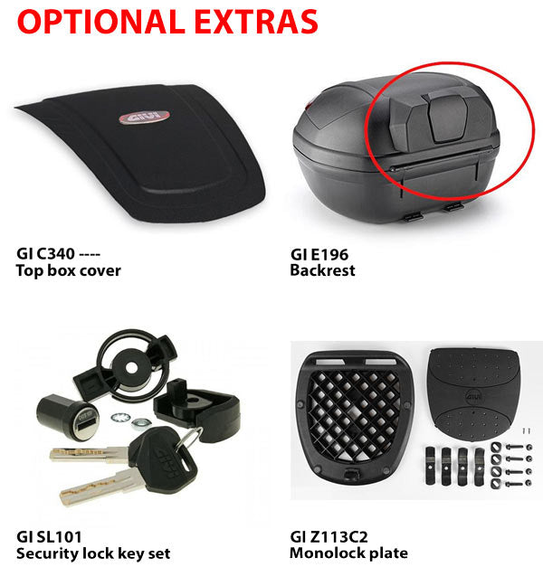 Disclaimer: Givi's Monolock top cases are designed primarily for scooters or small capacity motorcycles whose use is typically urban commuting at speeds not exceeding 60kph. Their lightweight construction is not intended for use on large capacity motorcycles at highway speeds, for these applications we recommend Givi's Monokey top and side cases.