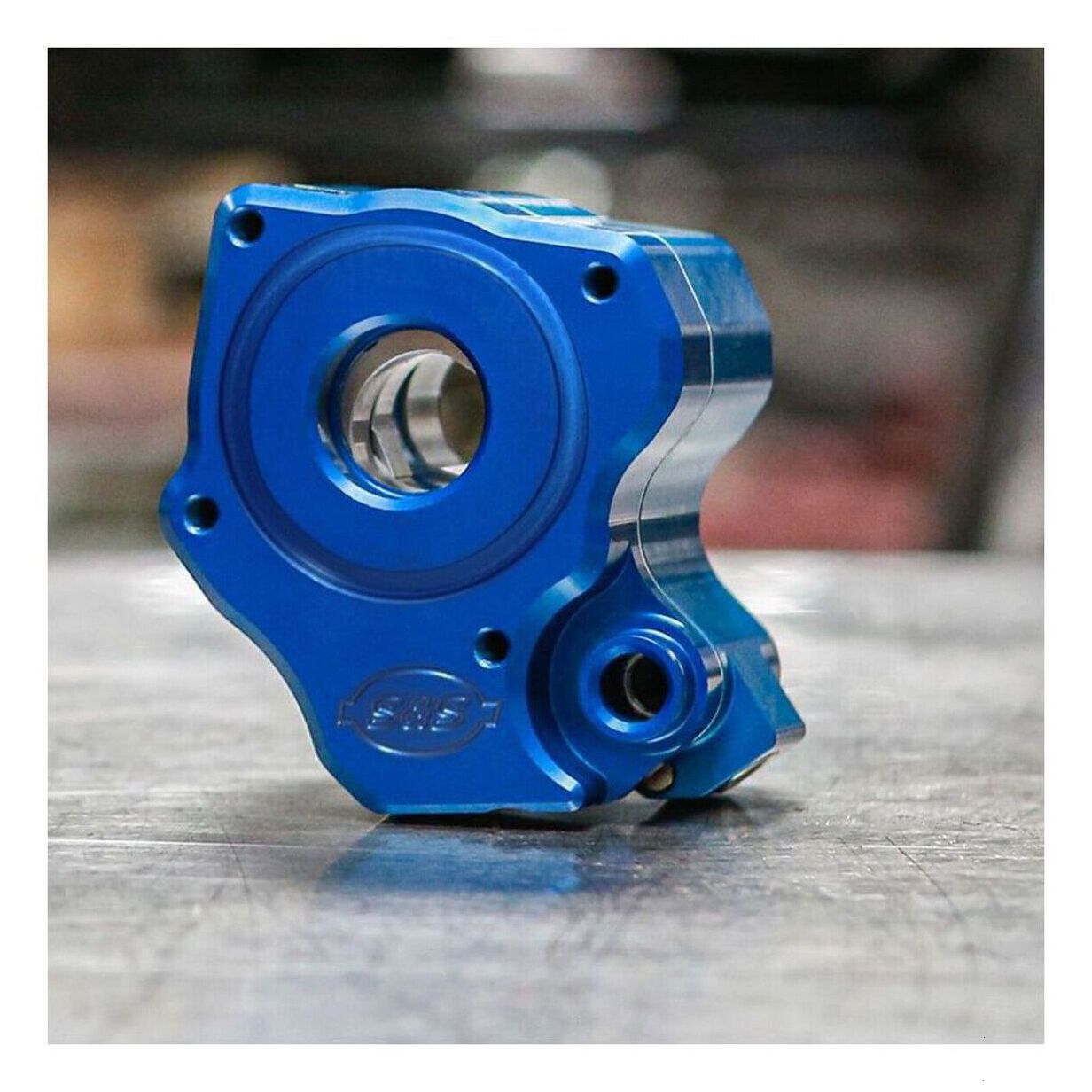 •20% flow increase on supply side and 52% flow increase on scavenge•Precision Machined from Billet Aluminum•Independant Scavenge Sections for Flywheel Cavity and Cam Chest•Debris Screens in both scavenge pickups•Magnet in cam chest to help prevent debris from entering pump.•Inreased flow capacity on both feed and scavenge side.•Adjustable Pressure Relief Valve can be adjusted with unit in engine.•Blue Anodized Finish•Made in USA
