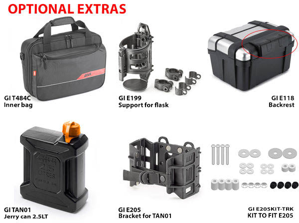 The TRK33, TRK46 and new TRK35 can all be used as either panniers or as a top box, while the TRK52 is one of the largest top boxes in the Givi range, making the standard Trekker range of hard luggage the most versatile in the Givi line-up. When bought as a pair, the TRK46 is keyed the same, and includes an extra lockset if you want to match your existing topcase. Available in anodised aluminium or painted black finish.