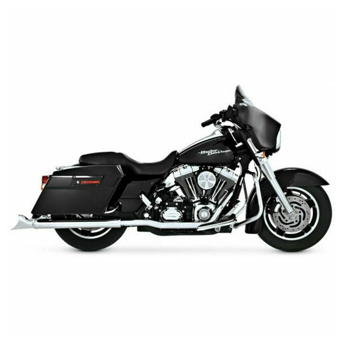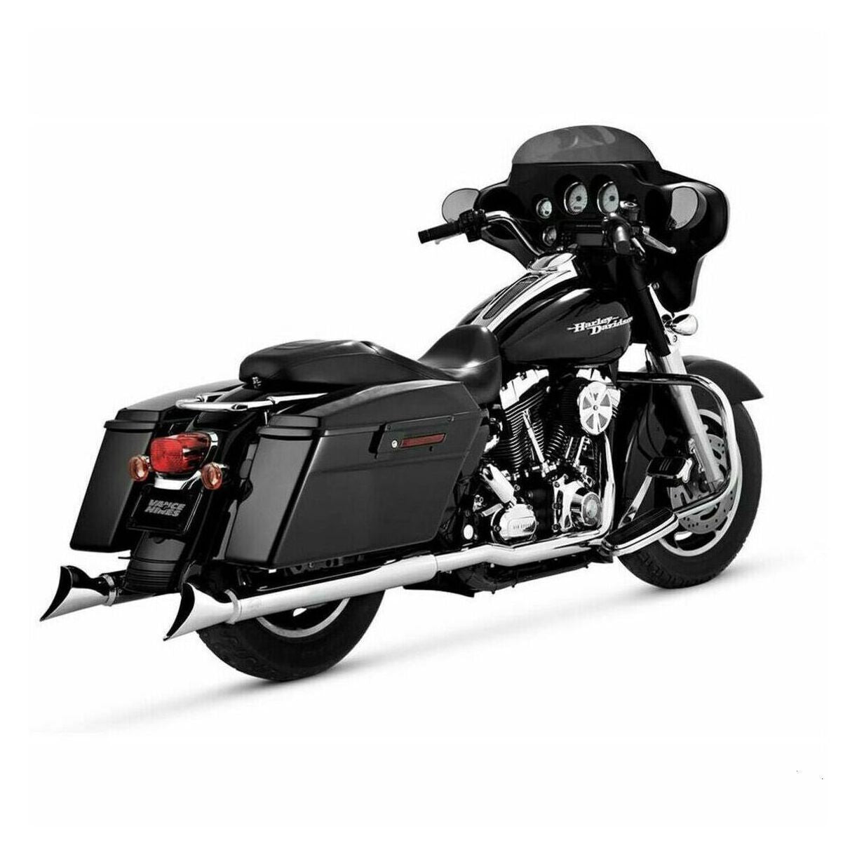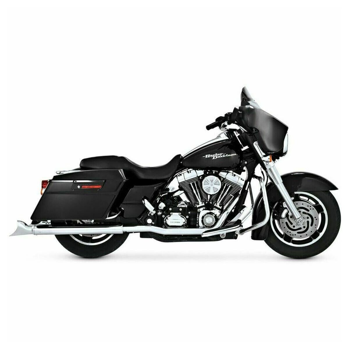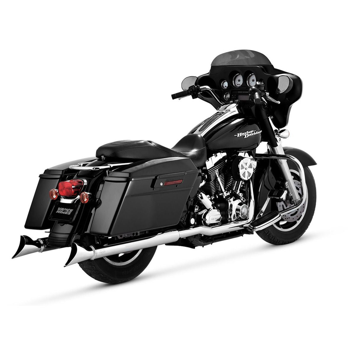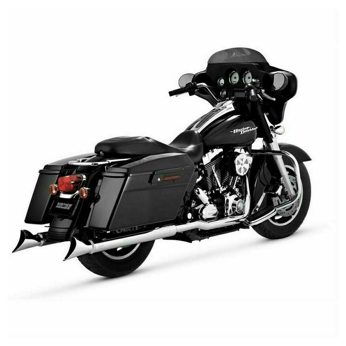 Vance and Hines Head pipes only; no mufflers are included Independent 1-3/4' header pipe system for maximum performance Includes 220° full-length 2-1/8' heat shields For use with any '95-'08 OEM-style mufflers Perfect complement to Vance & Hines slip-on mufflers (not included) CVO models require floorboard extension kit (not included) Non-sensor applications require sensor port plug kit (not included) Made in the U.S.A. Specs Product Name : Header Model : Dresser Duals Design/Configuration : 2-Into-2 System Color/Finish : Chrome Units : Set Riding Style : Street