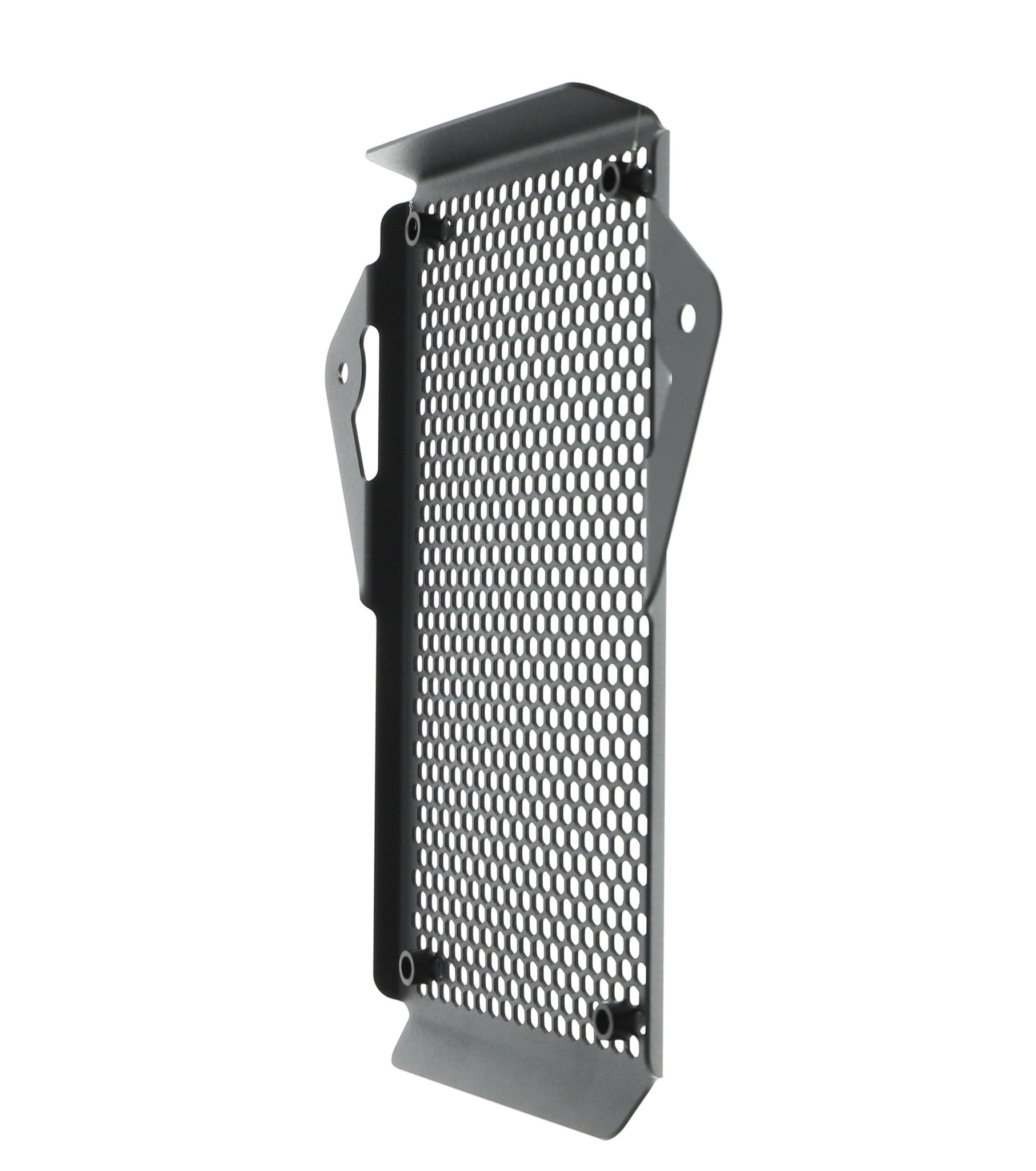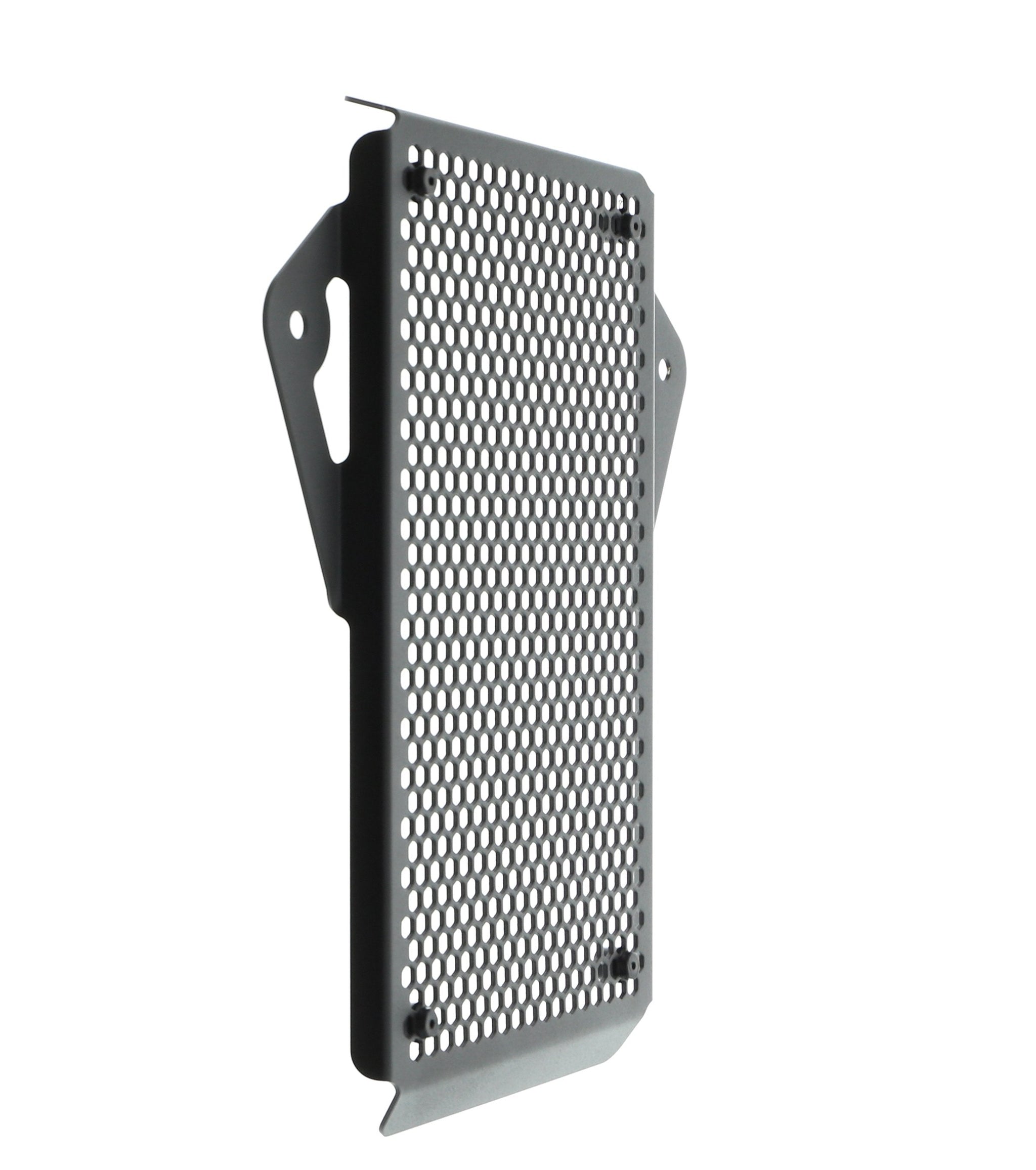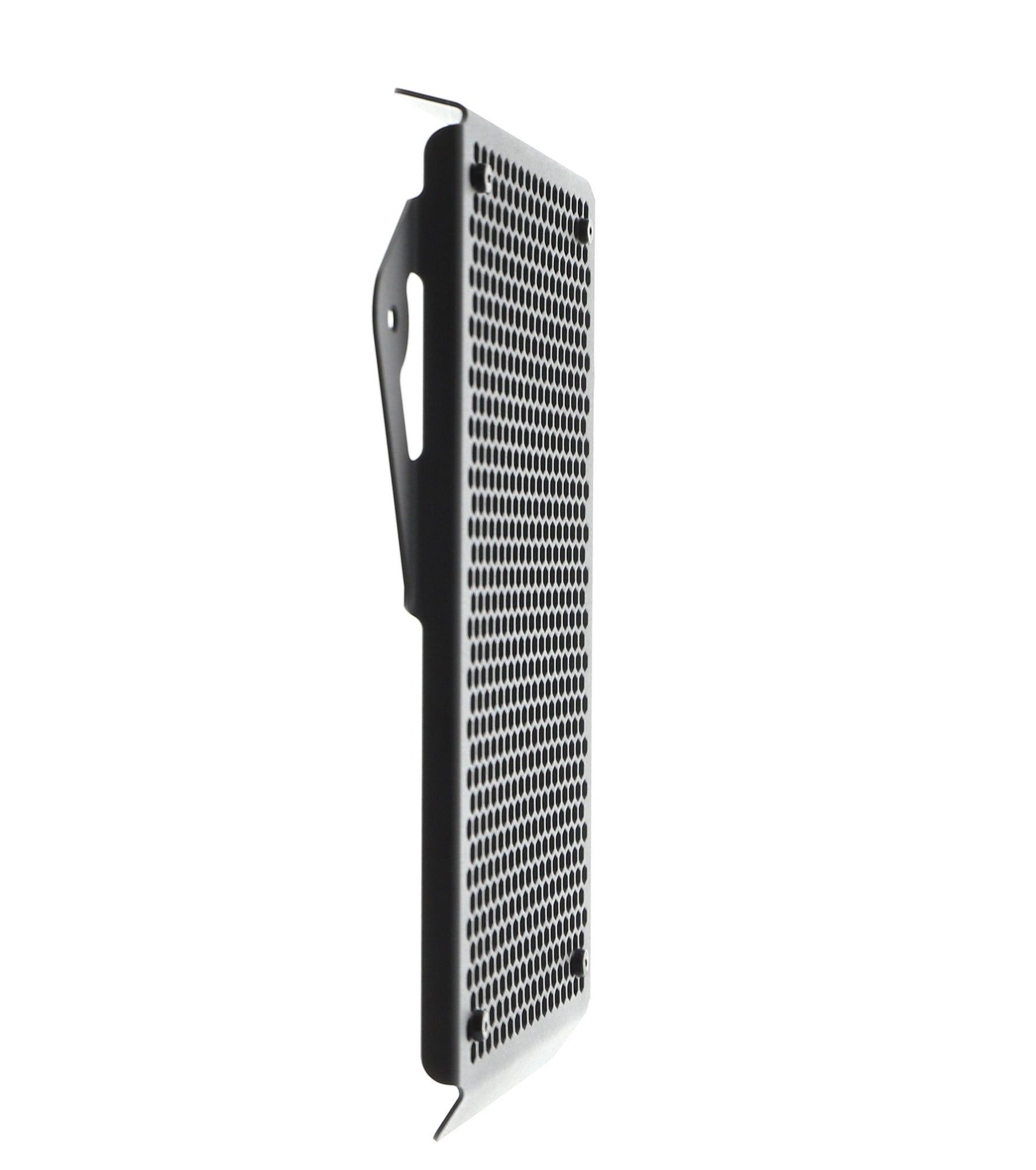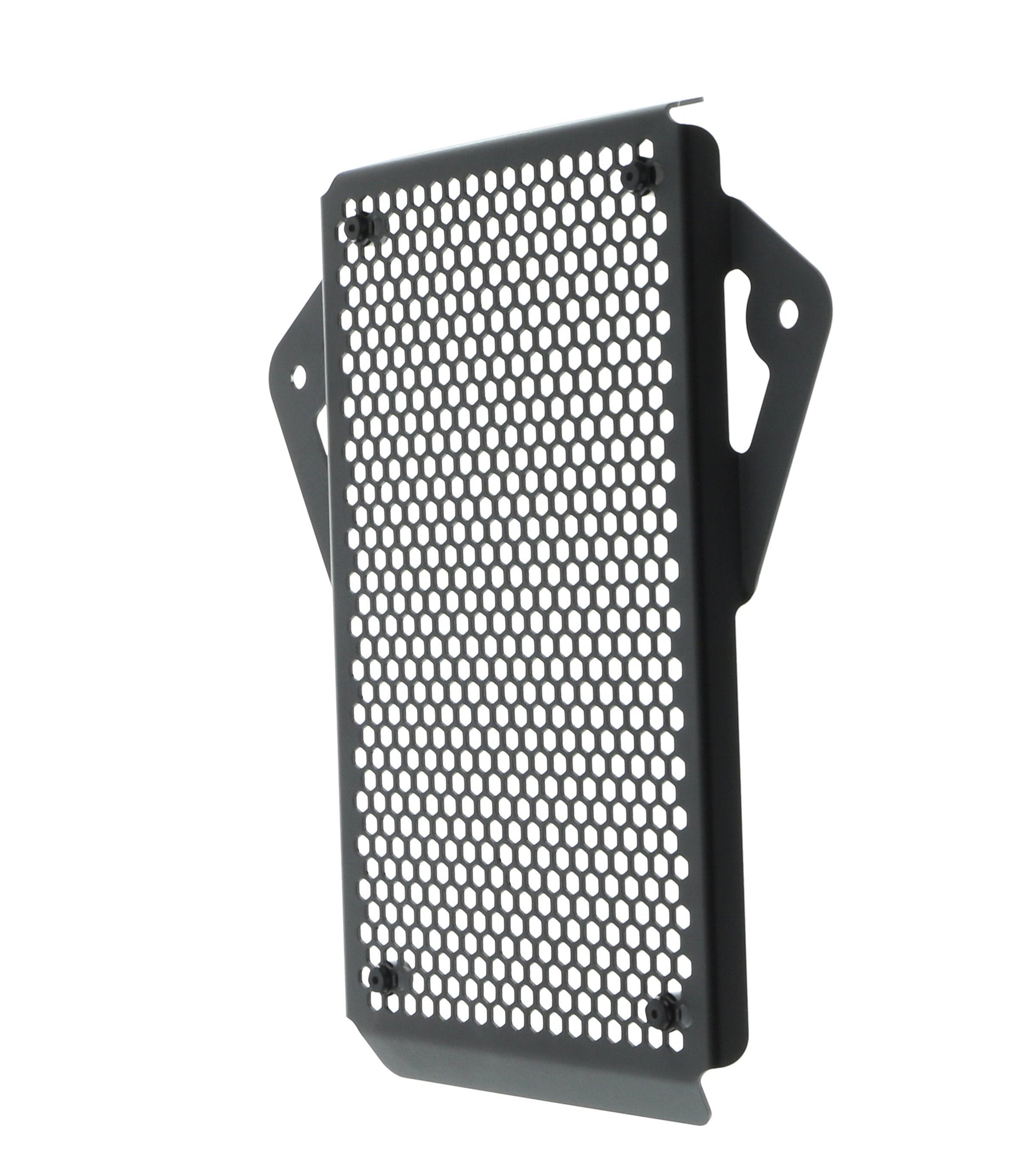 Hexagonal hole pattern to optimise airflow whilst providing maximum protection from road debris.