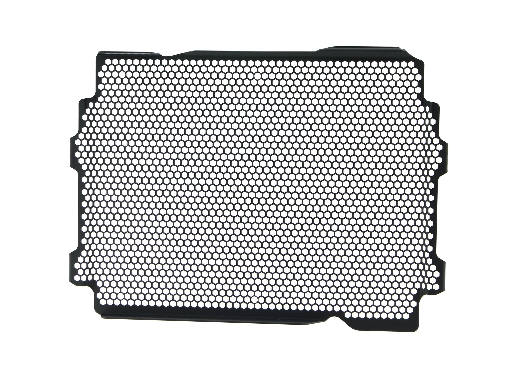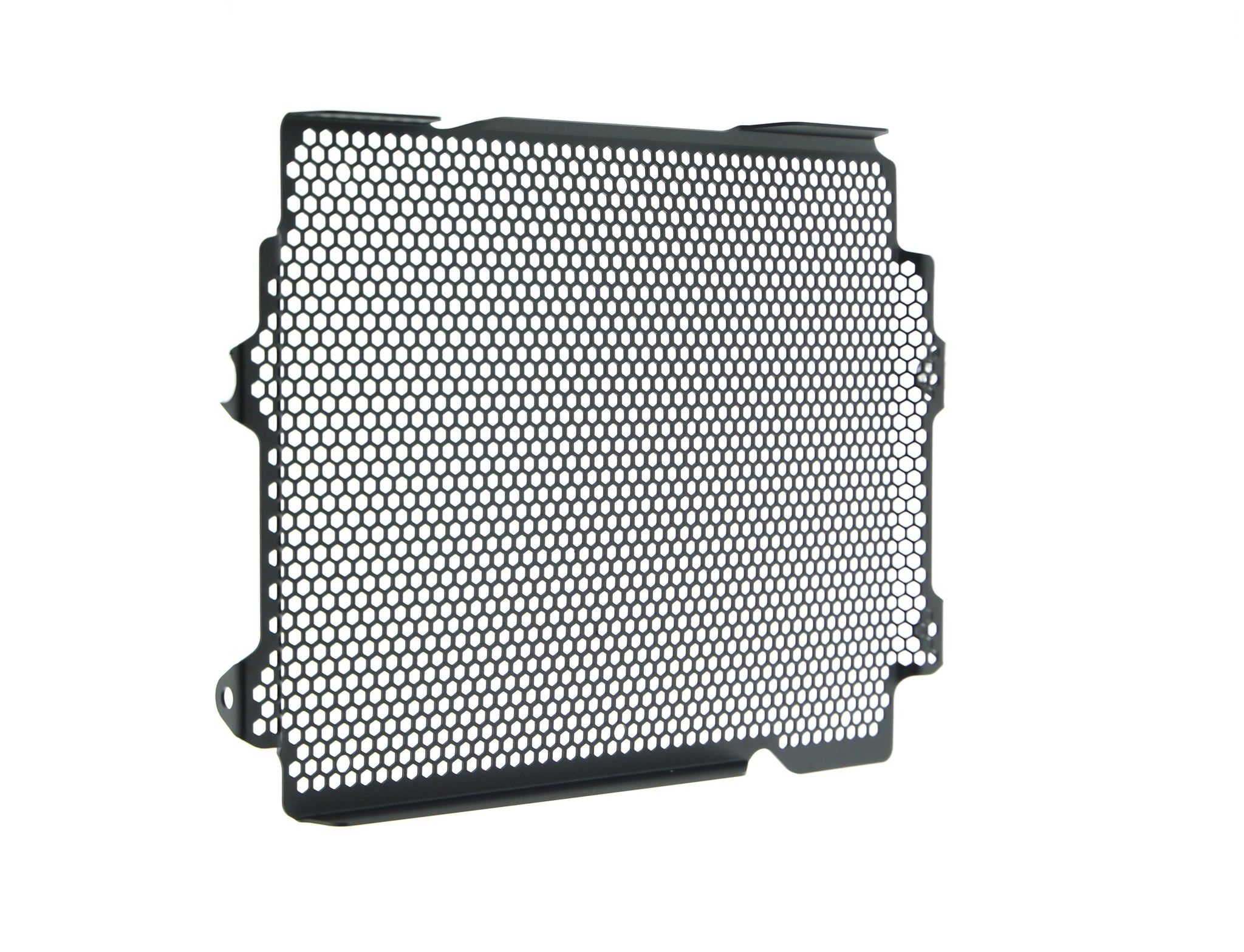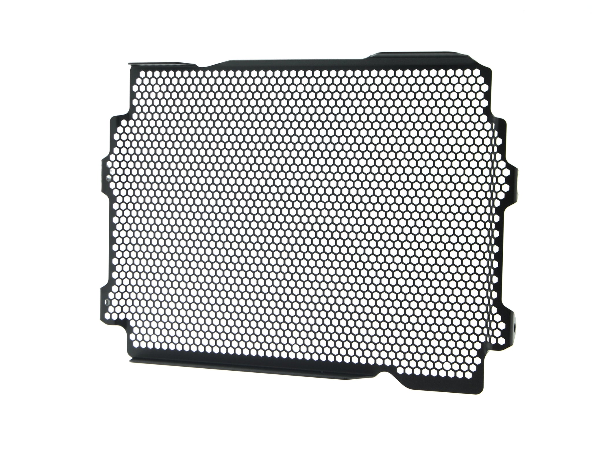 Hexagonal hole pattern to optimise airflow whilst providing maximum protection from road debris.