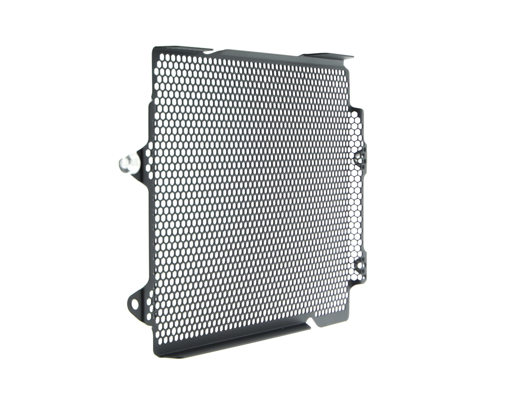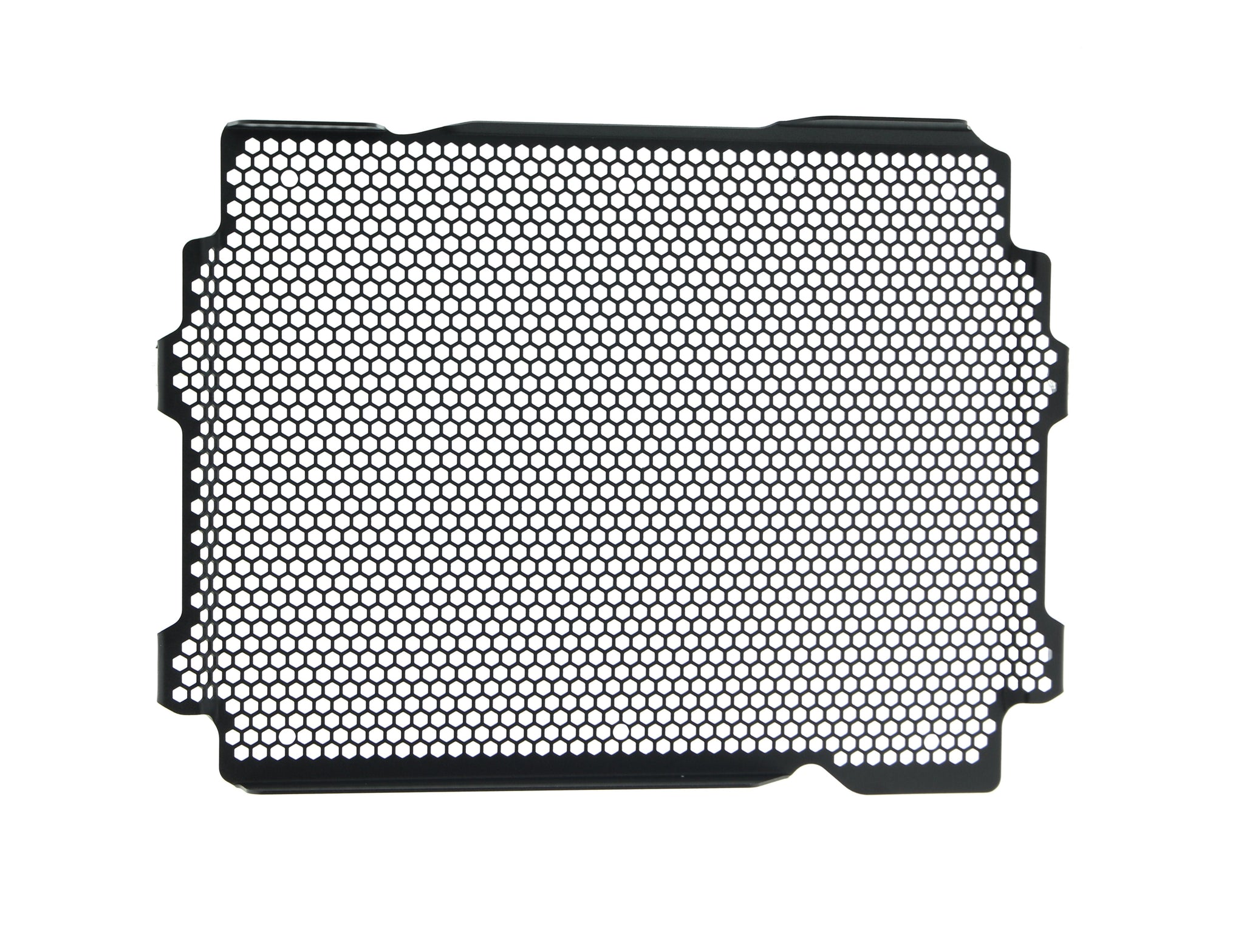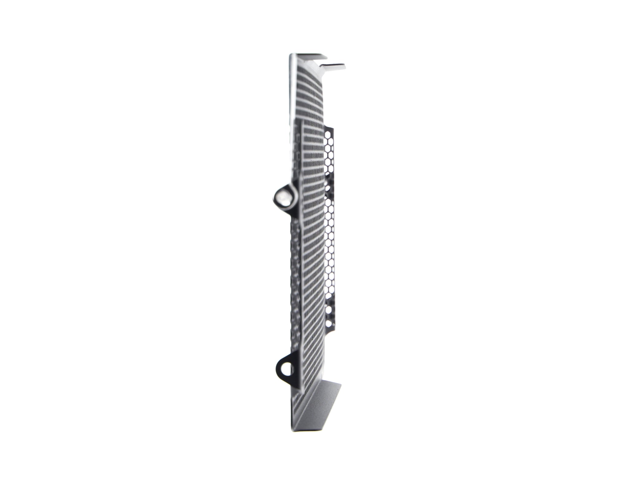 Hexagonal hole pattern to optimise airflow whilst providing maximum protection from road debris.